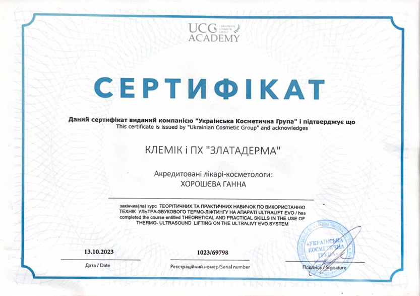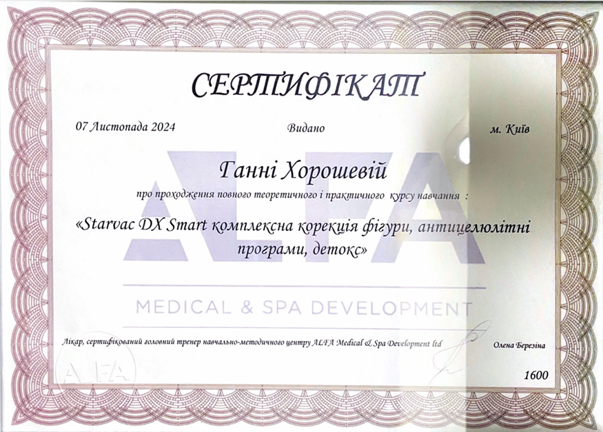 • 2018 р. — навчання апаратам SMAS — lifting UltraLift HIFU — EVO;