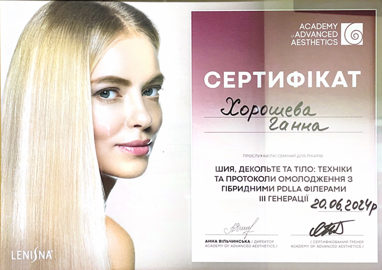 • 2018 р. — навчання контурній пластиці "RADIESSE";